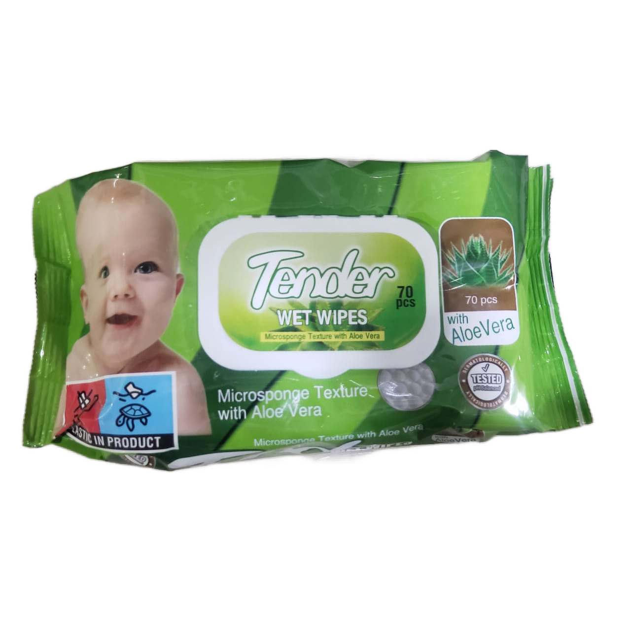 WET WIPES TENDER, MICROSPONGE TEXTURE WITH ALOE VERA, 70 PCS